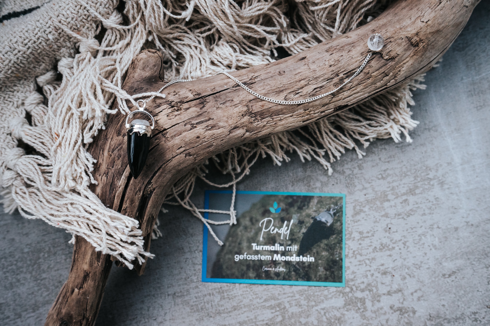 Turmalin-Pendel mit gefasstem Mondstein 100ml